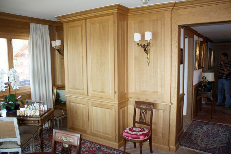 Armoire bois réalisée à Villars-sur-Ollon. L'exécution est en chêne avec verni effet naturel.