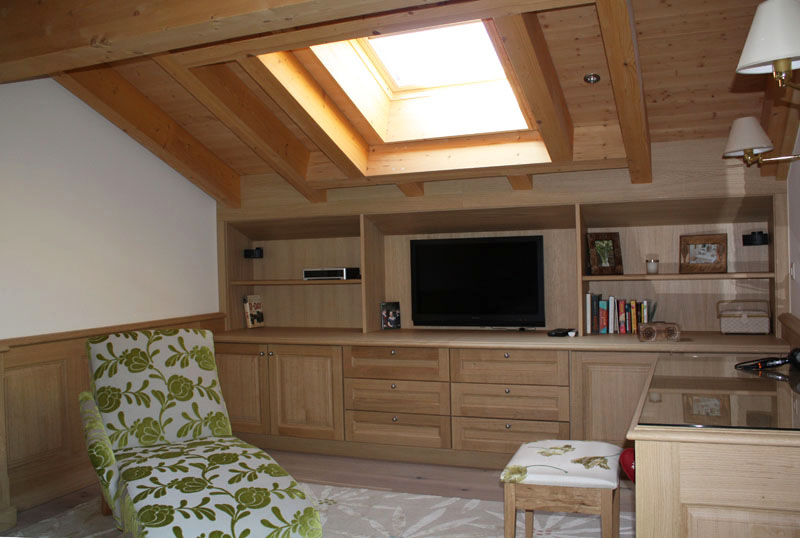Agencement d'armoire en bois réalisé à Villars-sur-Ollon. L'exécution est en chêne avec verni effet naturel