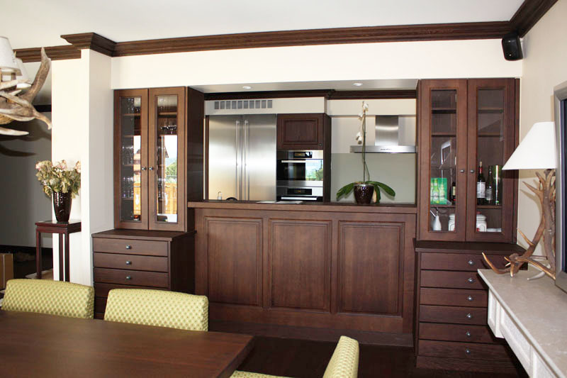 Vaisselier sur mesures réalisé à Villars-sur-Ollon. L'exécution est en chêne teinté brossé
