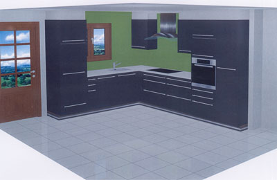 Voici le projet informatique en 3 dimensions pour la rénovation d'un agencement de cuisine
