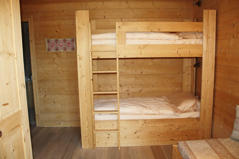 Lits à étage réalisés à Champery. L'exécution de ce mobilier est en sapin bossé étuvé