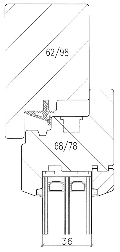 Ceci est un détail d'une fenêtre bois MEKO 5 avec un triple-vitage