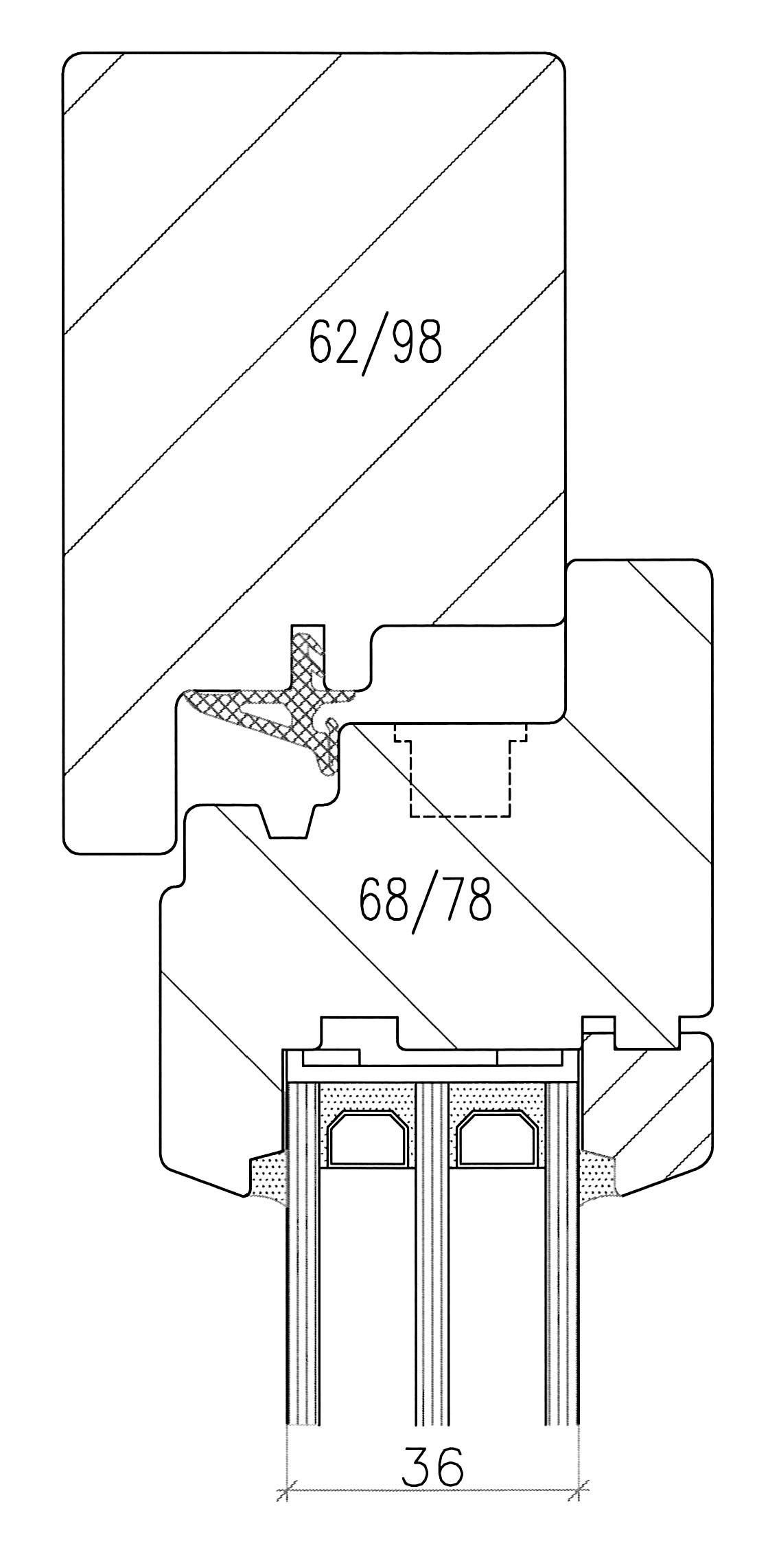 Ceci est un détail du haut et côté pour une fenêtre bois avec triple-vitrage
