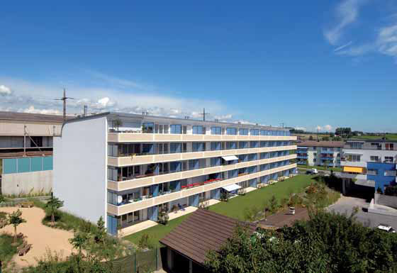 Immeuble situé à St-Prex. Nous avons réalisé les Bow-Window, les fenêtres bois et les fenêtres bois-métal avec peinture finie en atelier.