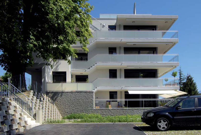 Immeuble situé à Lutry. Nous avons réalisé les fenêtres bois et les fenêtres bois-métal avec peinture finie en atelier.