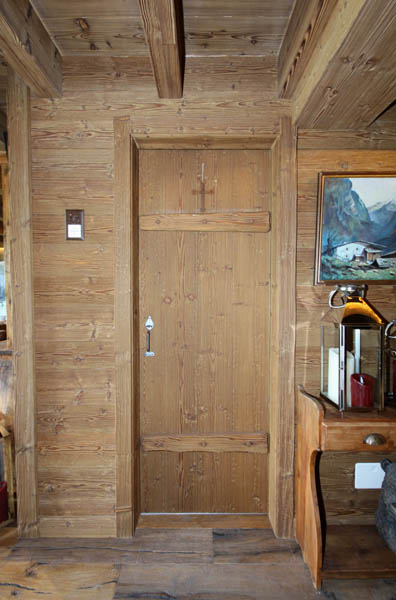 Porte intérieure et boiserie sapin brossé vieilli teinté