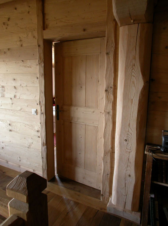 Porte réalisée à Champéry. L'exécution est en sapin brossé avec cire naturelle